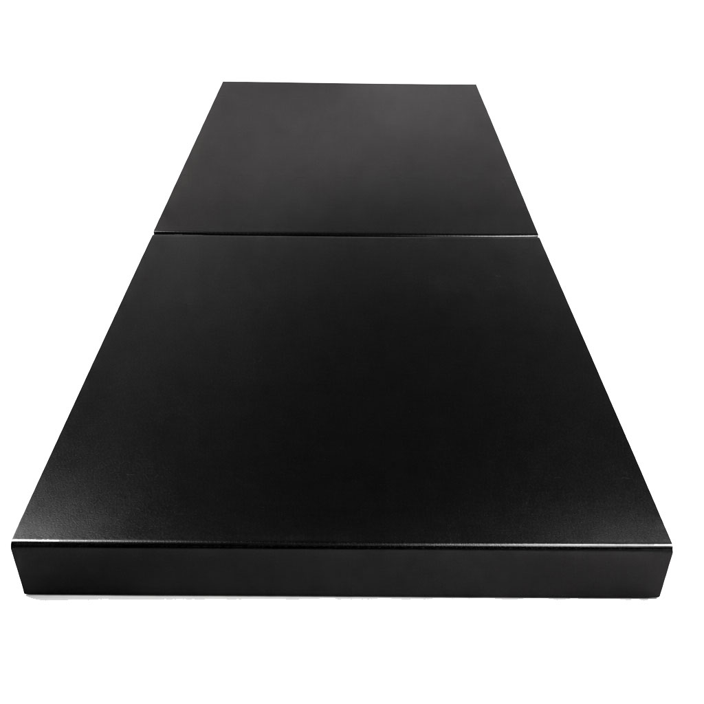 Senterplate som legges imellom plattformene på S2L sakseløfteren ved nedfelling. Platen er laget i kraftig stålkonstuksjon, slik at den tåler at den kjøres over.