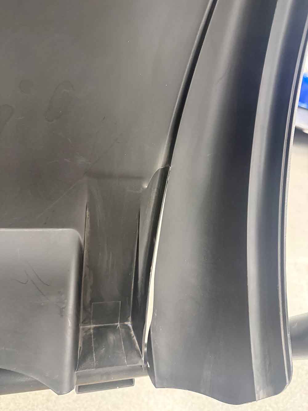 Maskinen har mindre, kosmetiske skader i plasten på beskyttelsesdekselet over hjulet. Skadene påvirker ikke funksjon, presisjon eller sikkerhet.